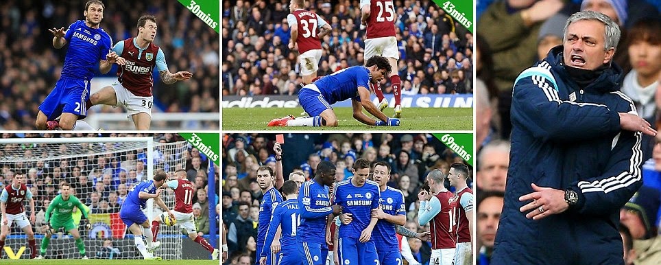 He stabbed it past Tom Heaton, and Chelsea proceeded to control the game. Mourinho would say they would have been out of sight had it not been for the Kightly and Keane decisions, but Cuadrado could have added a second in the second half, only for Mee to divert the ball away.